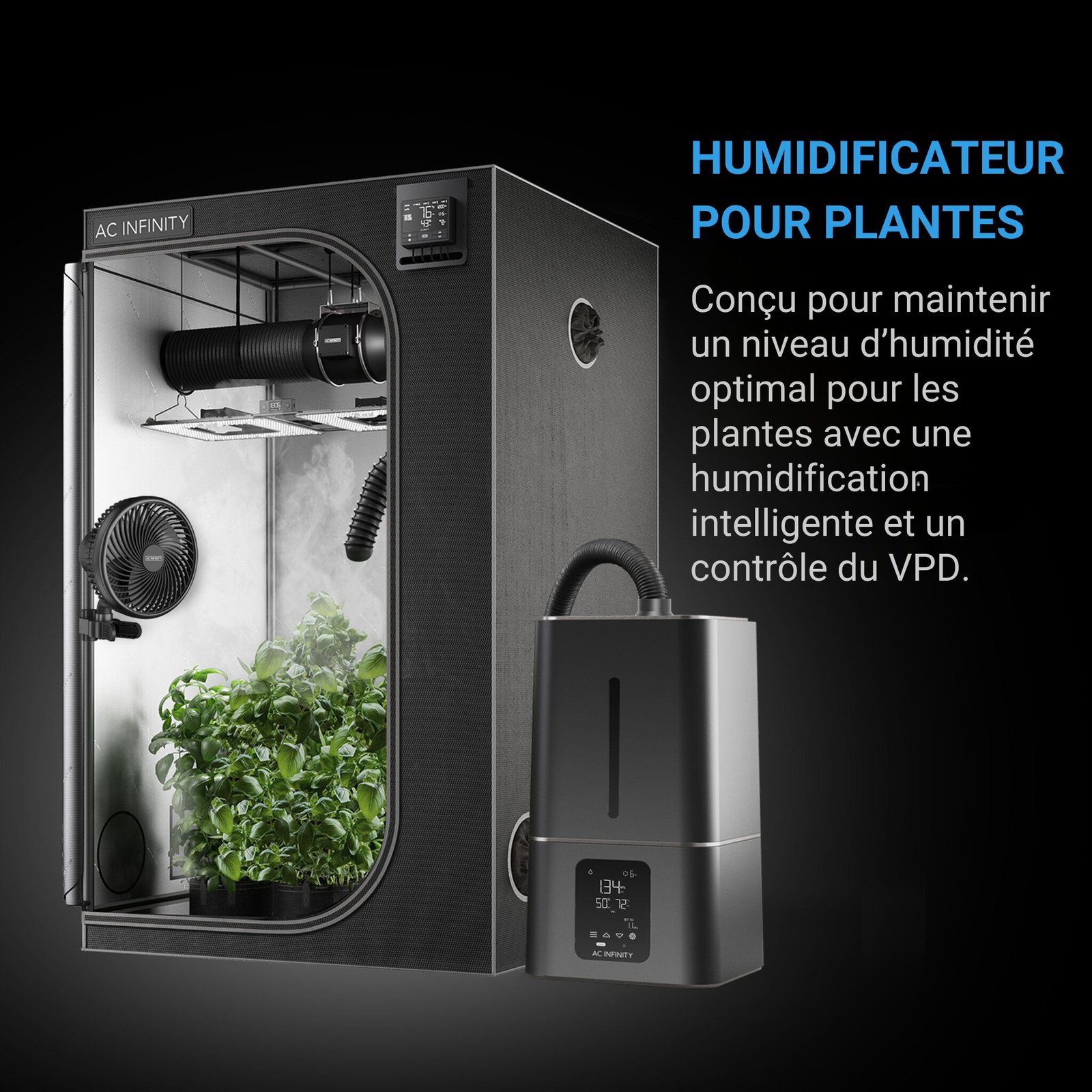 - Conçu avec des commandes intelligentes et des niveaux de brumisations précis pour obtenir une humidité optimale pour la croissance des plantes.