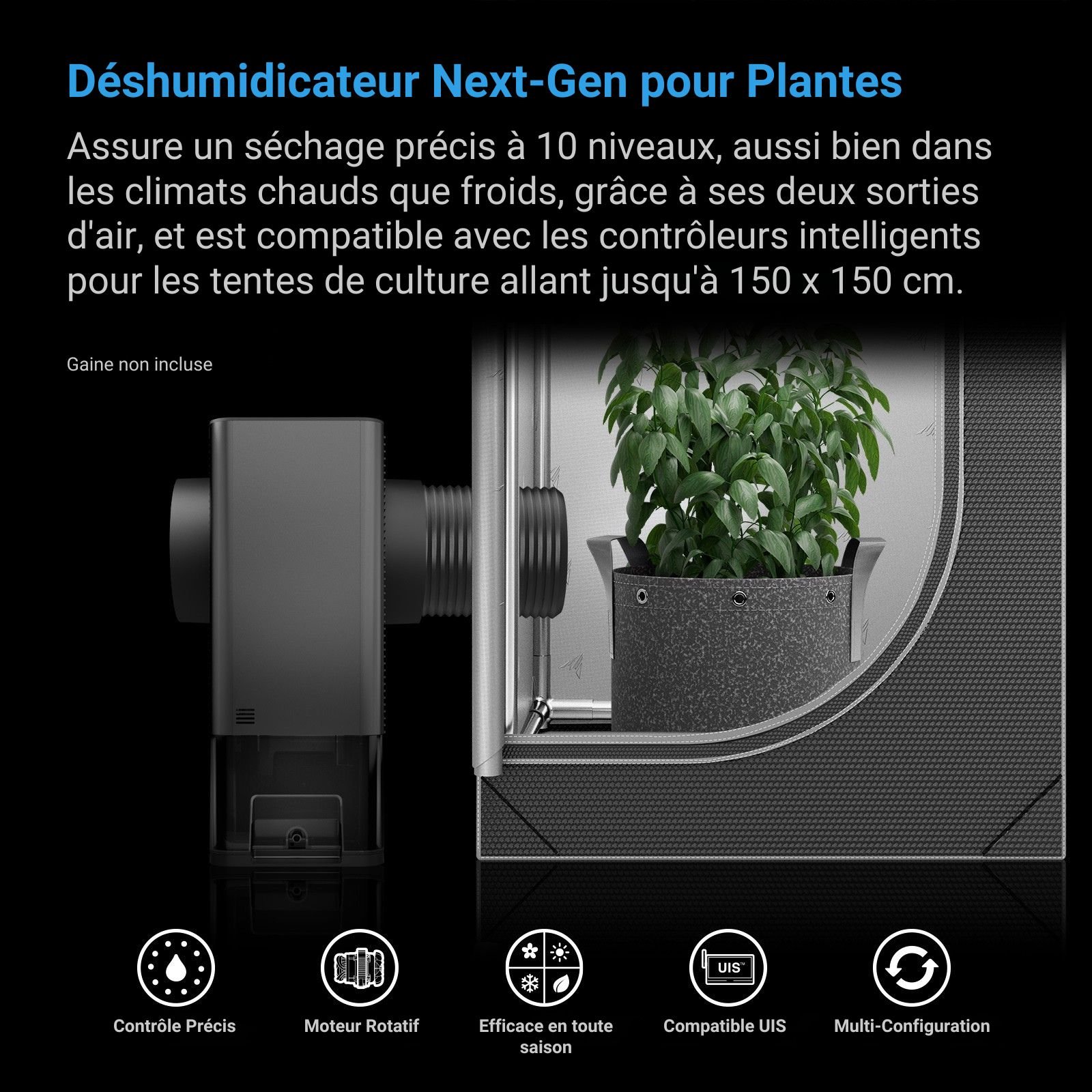 AC Infinity HYDRONE 5, Déshumidificateur pour Plantes avec 10 Niveau de Séchage, Efficace par Tous Climats, jusqu’à 150x150cm