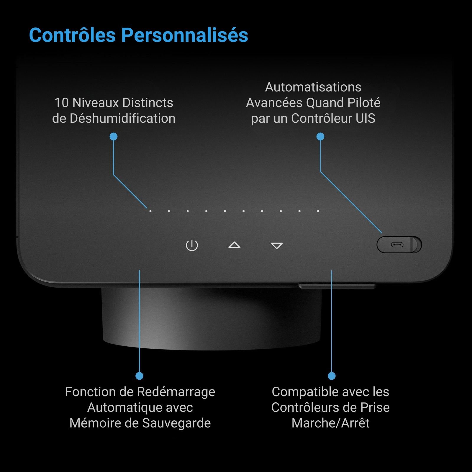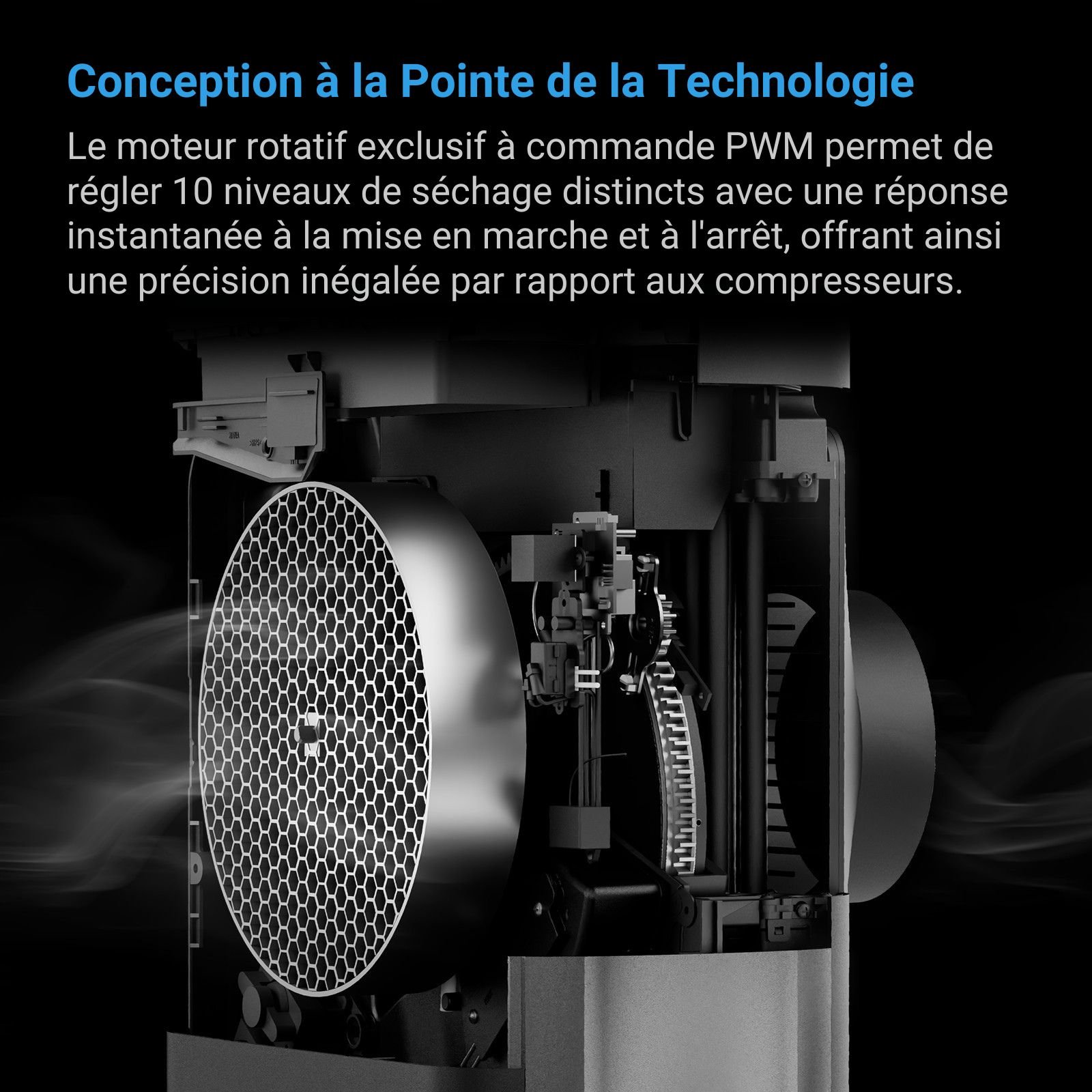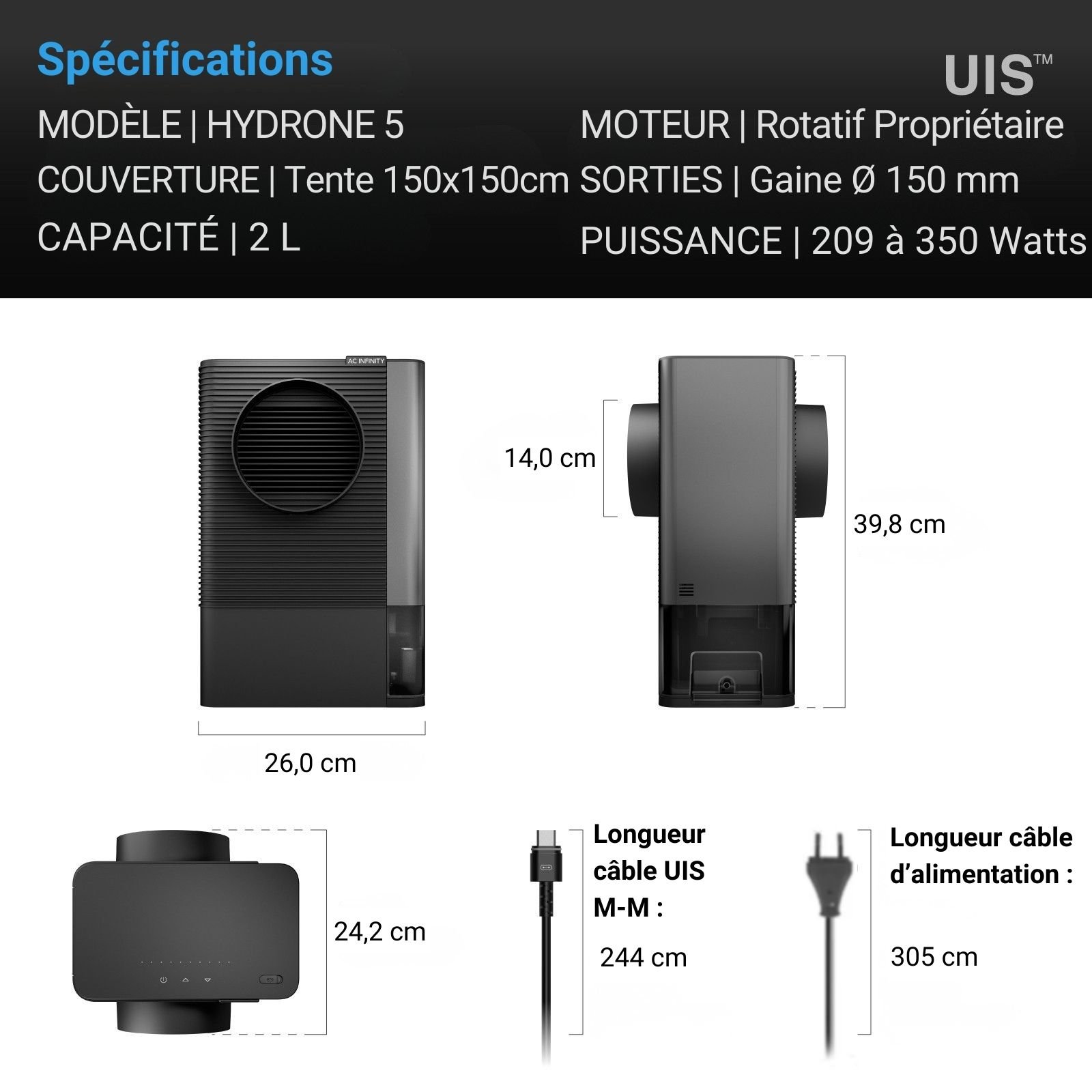 • Le déshumidificateur AC Infinity Hydrone 5 offre un contrôle climatique haute précision grâce à son moteur rotatif PWM à 10 niveaux.