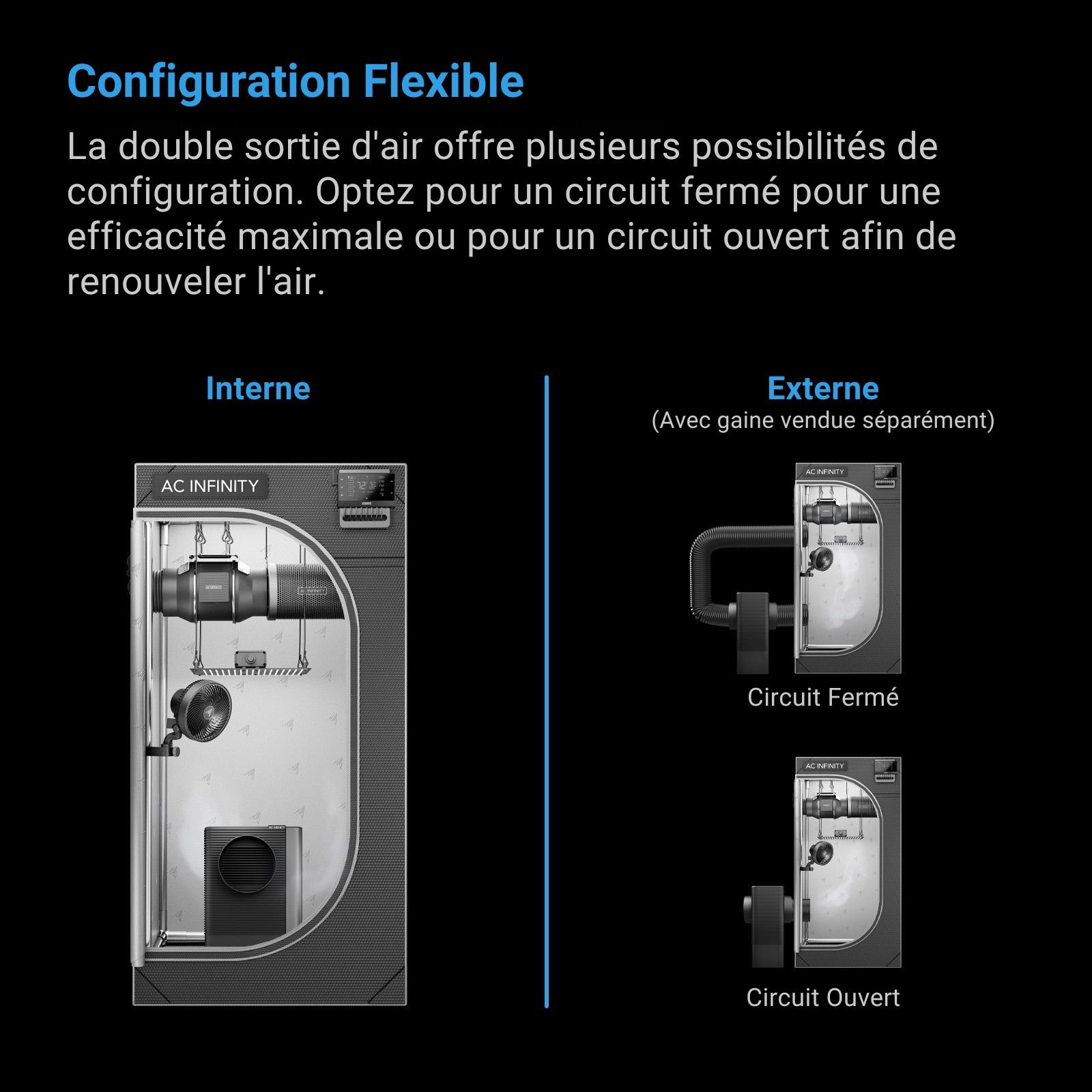 • Le design polyvalent inclut deux ports de gaine de 15 cm pour une installation facile en circuit ouvert ou fermé dans votre espace.