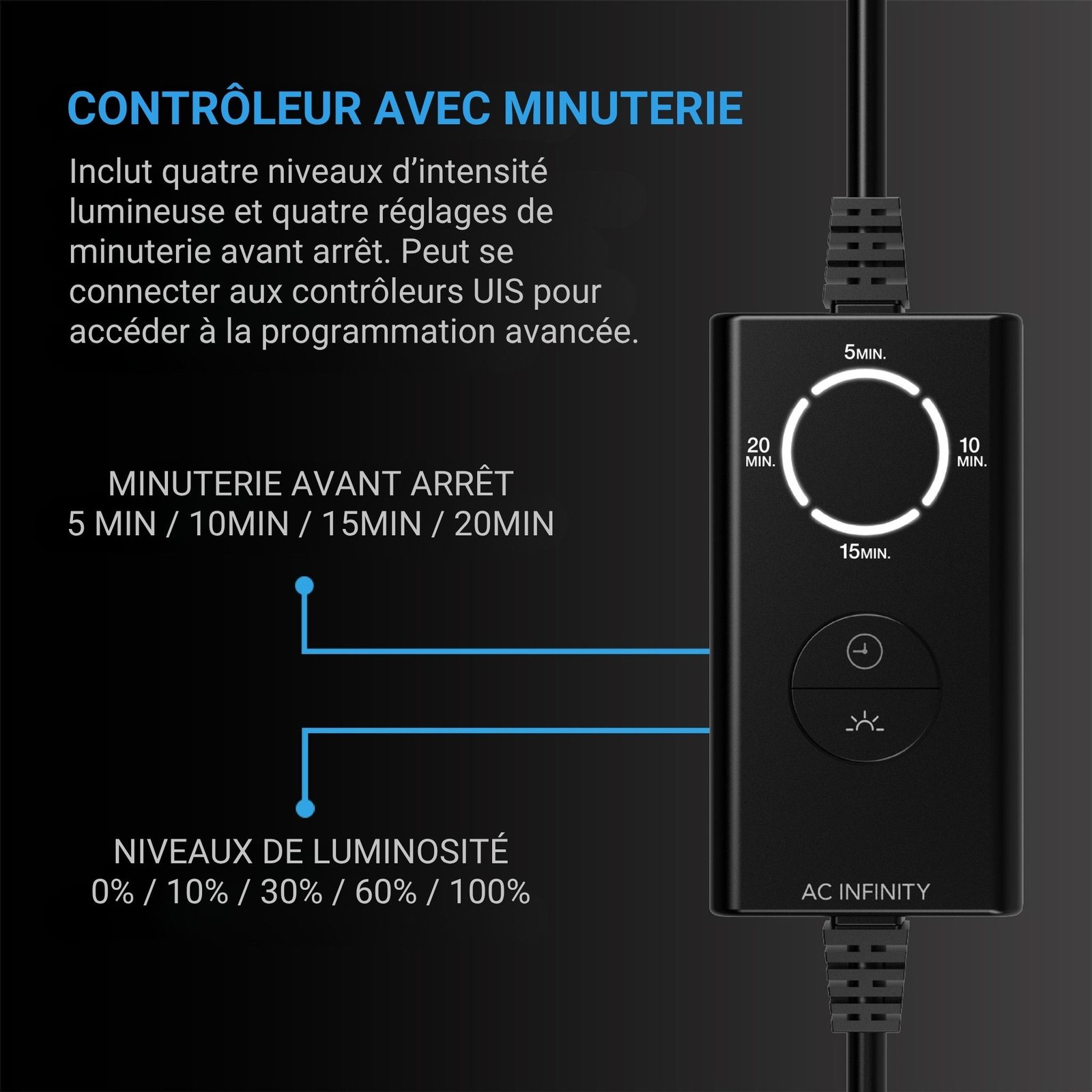 L'AC Infinity IONBEAM Green se distingue par sa polyvalence exemplaire dans les environnements de culture les plus exigeants. La certification IP65 protège efficacement le matériel contre les projections d'eau et la forte humidité souvent présente sous les tentes. Par ailleurs, le kit comprend un contrôleur qui permet de programmer des durées d'allumage spécifiques via une interface intuitive. Vous pouvez ainsi adapter la puissance de l'éclairage vert pour obtenir un confort visuel optimal sans éblouissement. Cette précision de réglage transforme vos sessions de travail nocturnes en une expérience agréable et sécurisée pour vos végétaux.