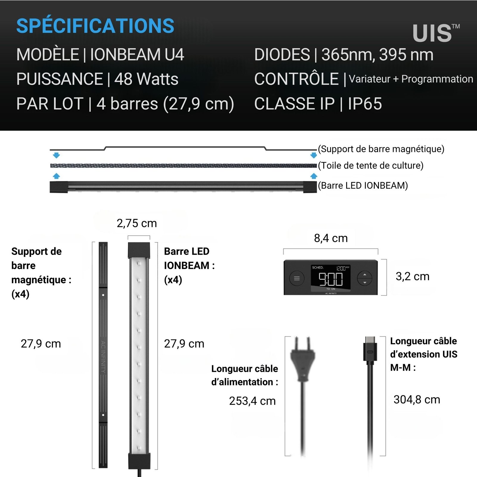 Le raccordement au système UIS offre des possibilités de contrôle avancées pour synchroniser vos barres UV avec votre éclairage principal. Vous pouvez programmer des rampes d'allumage progressives ou des cycles intermittents selon les besoins spécifiques de vos variétés préférées. De même, les câbles d'extension inclus permettent de positionner les quatre unités aux endroits les plus critiques de votre installation. Cette modularité logicielle et physique garantit une optimisation totale de l'énergie lumineuse utilisée.