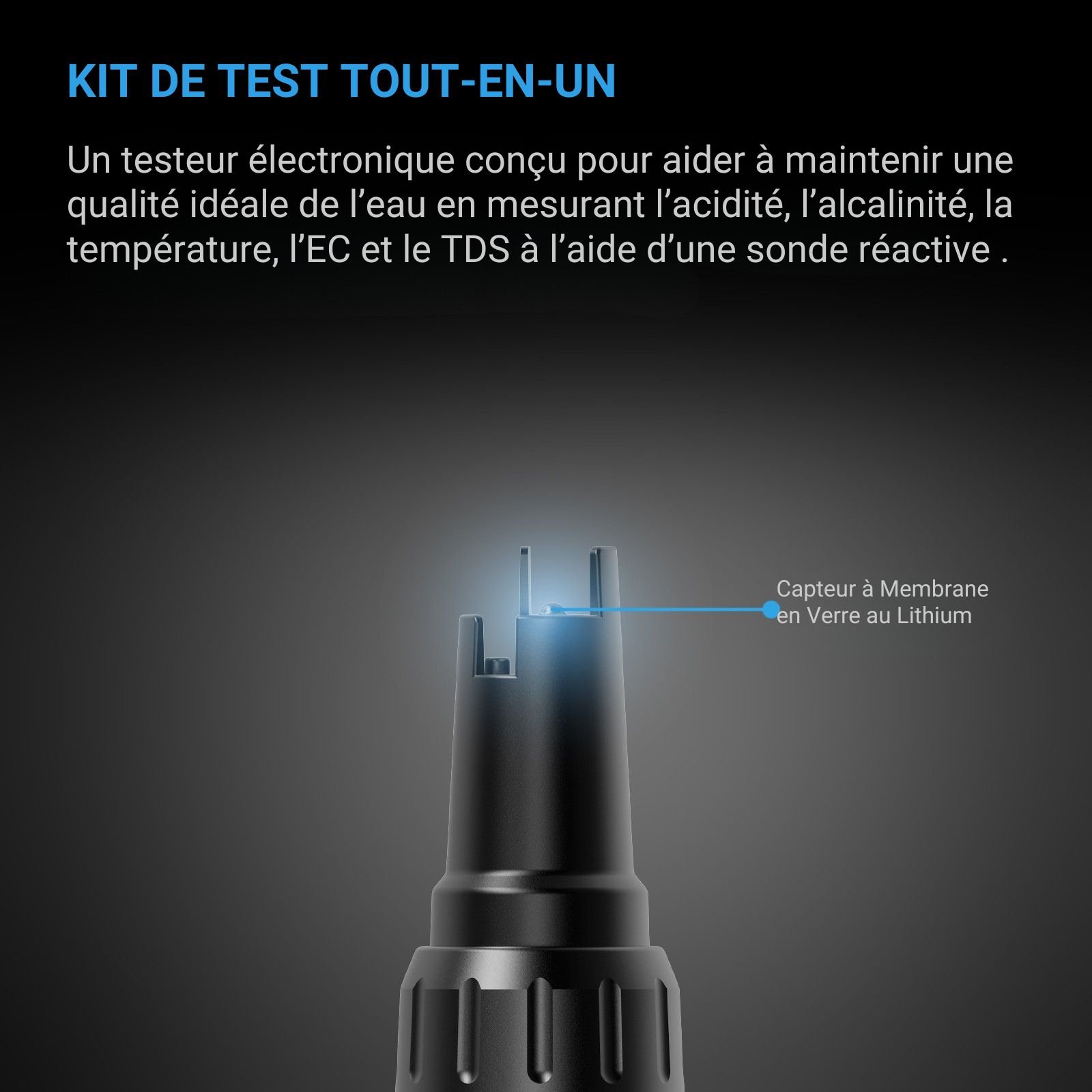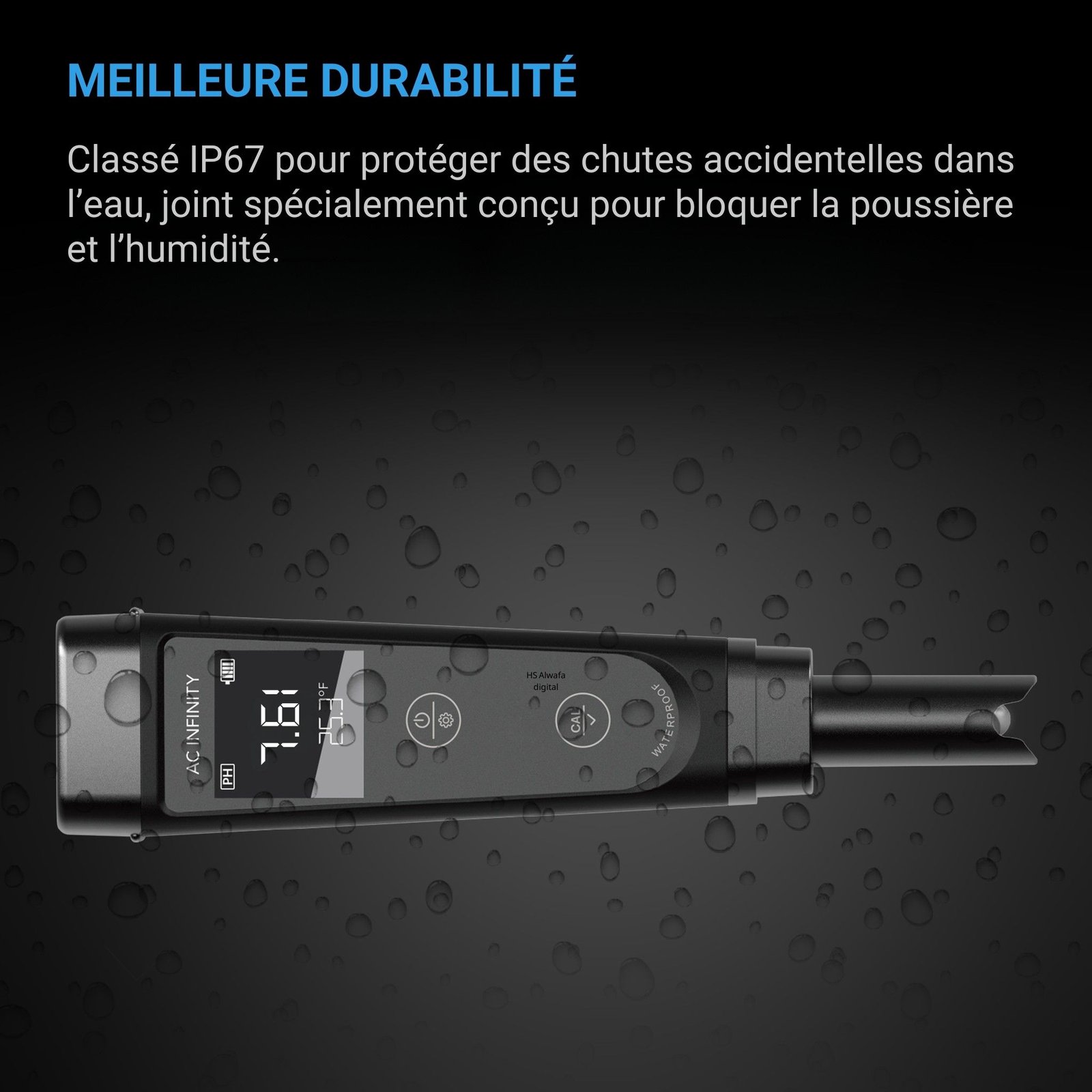 - Testeur de pH et EC pour l’évaluation de la qualité de l’eau, conçu pour aider à surveiller et à maintenir des niveaux de pH appropriés.