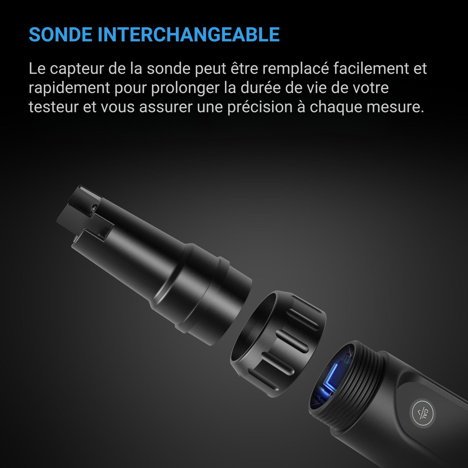 - La sonde remplaçable à membrane en verre sensible fournit des mesures instantanées avec une grande précision.