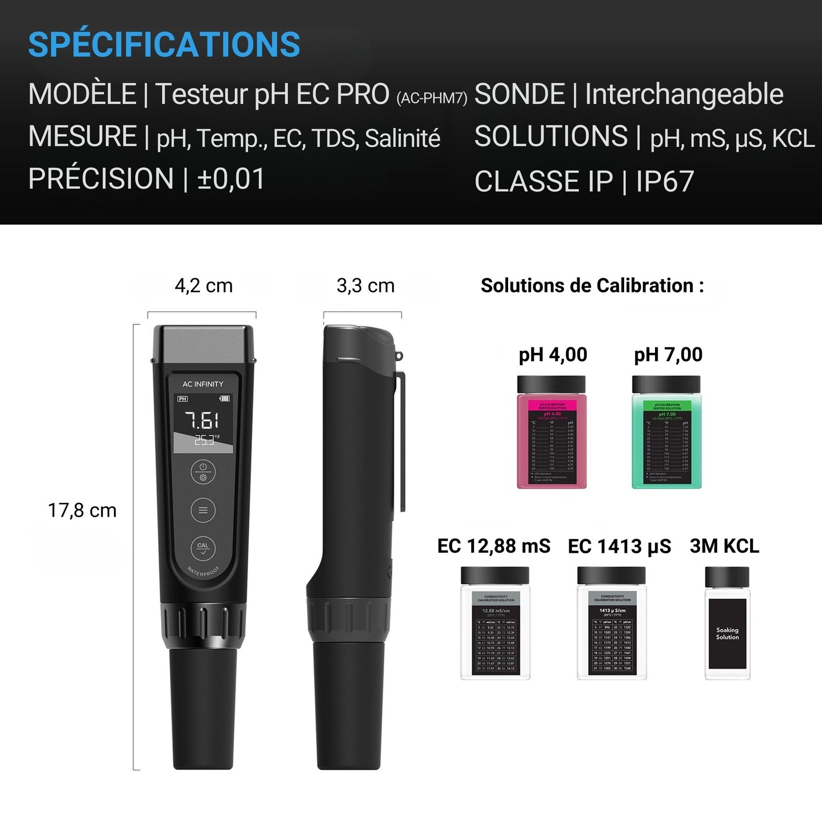 AC INFINITY Kit de Mesure Hydroponique PRO, Testeur de pH et EC avec Sonde Interchangeable