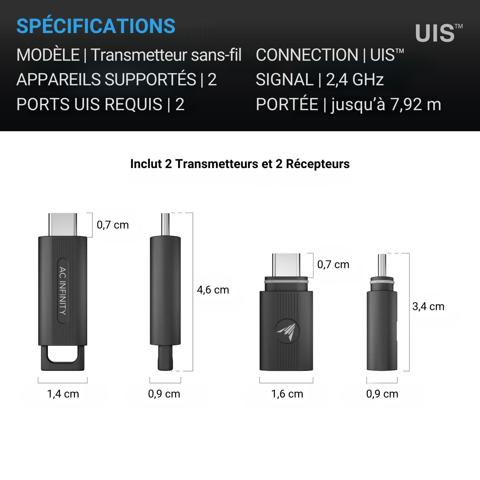 AC INFINITY Transmetteur Récepteur sans fil UIS, Connecte les appareils et contrôleurs UIS, lot de 2